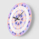 Reloj de niñera con bonito morado rosado y pequeña estrella. En primavera y verano, los colores son el violeta pastel, el melocotón pastel y el rosa rosa de azúcar. Reloj de pared de patrón geométrico moderno de primavera y verano para decorar la guardería o el dormitorio de la bebé. Los colores alegres y claros del verano para la decoración de dopamina. Una decoración mágica para tu hija, con el texto de la rima de vivero "Estrella pequeña Twinkle Twinkle".