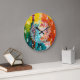 Reloj Redondo Grande Pintura abstracta colorida con Petals Mandala