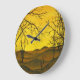 Reloj Redondo Grande Pintura de Gouache: cielo amarillo, marrón.