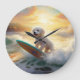 Reloj Redondo Grande Pintura de surf de Bichon Frise Beach