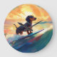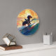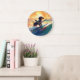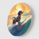 Reloj Redondo Grande Pintura de surf en la playa de Dachshund