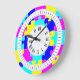 Reloj Redondo Grande Pinza aguda rosa caliente, azul y amarillo arte de
