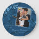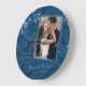 Cambie la foto y el texto para personalizar este boda, compromiso o reloj de pared de aniversario de la plantilla de fotos florales azul abstracta. Un elegante diseño floral.