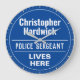 Un regalo divertido al estilo conmemorativo de la placa de la pared en forma de reloj de pared para un sargento de policía. Placa azul y blanca. Edite el diseño para cambiar la redacción de manera que se ajuste al destinatario del regalo.