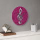 Elegant, glamorous girly clock. Beautiful, dazzling trendy printed image silver and diamonds bling jewels musical note on a chic hot pink sparkly glitter printed image background. A cute, classy, fashionable, stylish, pretty gift for her or any music lover.