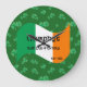 Reloj Redondo Grande Pub y Eatery personalizados Shamrock con bandera i