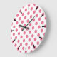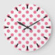 Reloj Redondo Grande Puntos de polka rosa y blanco