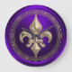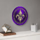 Reloj Redondo Grande Púrpura y dorada Flor de Lis