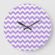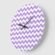 Reloj Redondo Grande Púrpura Zigzag, Púrpura Chevron, Patrón Geométrico