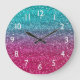 Reloj Redondo Grande Purpurina de gradiente rosa oscuro y azul brillant