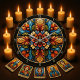 This captivating wall clock features an intricate stained glass design of a cross, adorned with a vibrant explosion of colorful, abstract floral and leaf patterns. The brilliant hues and detailed artistry create an uplifting and captivating piece, perfect for adding a touch of faith and radiant beauty to any room. Edit color of the clocks numbers in the Design tool to your favored colors.