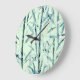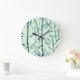 Reloj Redondo Grande Ramas de bambú, blanco, verde, hojas, bambú