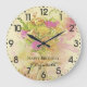 Reloj Redondo Grande Ramo de la flor de la acuarela del cumpleaños