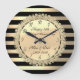 Reloj Redondo Grande Rayas doradas, flores 50 aniversario de bodas