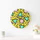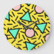 Reloj Redondo Grande Rayas mosaicas: patrón retro memphis