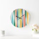 Reloj Redondo Grande Rayas retro Naranja verde moderno de mediados del