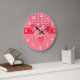 Reloj Redondo Grande Red and Pink Plaid with Baby Elephant