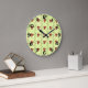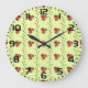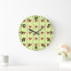 Reloj Redondo Grande Red Floral Vine Pattern on Light Green