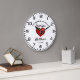 Reloj de pared grande personalizado para aniversario (o cualquier aniversario ya que puede cambiar el texto) con corazón rojo en el centro.