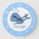 Reloj Redondo Grande Reloj azul claro de ballena grande con nombre de b