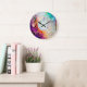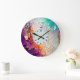 Reloj Redondo Grande Resumen del patrón de vidrio manchado geométrico
