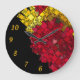 Añada un toque contemporáneo a una pared vacía o incolora. Este diseño abstracto presenta formas geométricas de color rojo, amarillo y dorado, y sólo cinco de 12 números dorados sobre un fondo negro. Una buena consideración para un regalo de bienvenida.