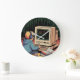 Reloj Redondo Grande Retro Gamer Kid en el arte de píxeles de una compu