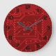 Reloj Redondo Grande Retro Red Circuit Board Tech Pattern
