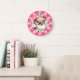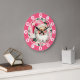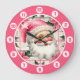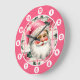 Reloj Redondo Grande Retro Rosa Santa Claus Navidades Floral Plaid