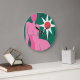 "Reverie Rosa" es una obra de arte minimalista que presenta una figura rosa abstracta con un fondo verde atrevido, iluminado por un sol blanco sereno. Esta impactante pieza mezcla elegancia y simplicidad, perfecta para espacios modernos.