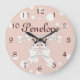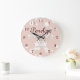 Reloj Redondo Grande Ribbon Rosa Pastel Blanco y Conejo Gemelo Divertid