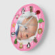 Reloj Redondo Grande Rosa del personalizado de los niños y de los bebés