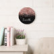 Personalizar el guión moderno de estilo manuscrito para crear tu propio reloj grande de pared redonda. Agregue un primer monograma detrás del nombre para crear su propia combinación inicial de nombre. La rosa de oro de glamen faux faux purpurina imprime como una foto de su regalo. Personalizar el color de fondo negro sólido. Hay otros relojes de pared purpurinas en esta tienda.