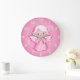 Reloj Redondo Grande Rosa Pastel Ángel, Rosa Caliente y Gris
