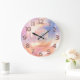 Reloj Redondo Grande Rosa Rosa holográfico de números en árabe negro