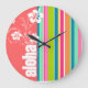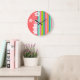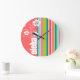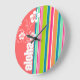 Reloj Redondo Grande Rosa salmón y verde marino a rayas: Aloha