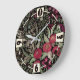 Reloj Redondo Grande Rosas acuarelas sobre fondo negro, acuarela