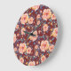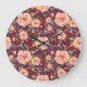 Reloj Redondo Grande Rosas, sin soldadura, patrón de fondo rojo
