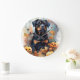 Reloj Redondo Grande Rottweiler de Halloween con calabazas aterradoras
