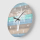 Reloj Redondo Grande Rustic Beach Wood Nautical and White Palm Trees