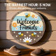 Reloj Redondo Grande Rustic Bee Welcome Friends