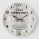 Rustic But First Coffee Black and White wall clock.