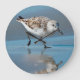 Reloj Redondo Grande Sanderling (Calidris Albe) Feeding On Wet Beach