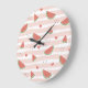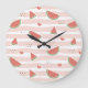 Reloj Redondo Grande sandías rojas, corazones, rayas, patrón de verano