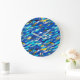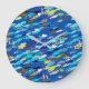 Reloj Redondo Grande School of Fish, Dark Blue, White and Turquoise