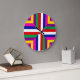 Este objeto de reloj de pared se basa en una forma física plegada, traducida a un sistema gráfico geométrico.