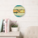 Reloj Redondo Grande Sencilla ilustración de la pesca del amanecer | Re