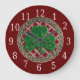 Reloj Redondo Grande Shamrock Rojo Y Nudos Celtos Redondos