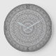 Stunning, high quality, Mandala wall clock in shades of silver & gray with dark gray numerals and light gray hands.