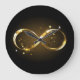 Oro, símbolo de infinito de joyas con estrellas doradas sobre fondo negro. Diseño con estrella dorada.